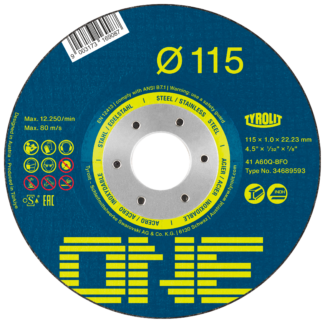 Tyrolit ONE Inox Flat Cut off Wheel – 115mm x 1mm x 22.23mm – (Pack of 25)
